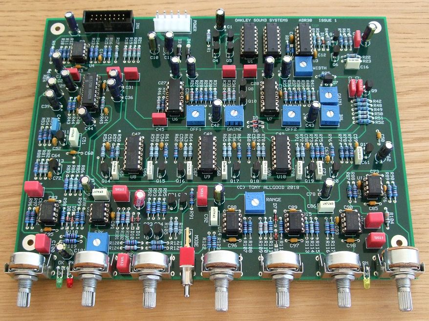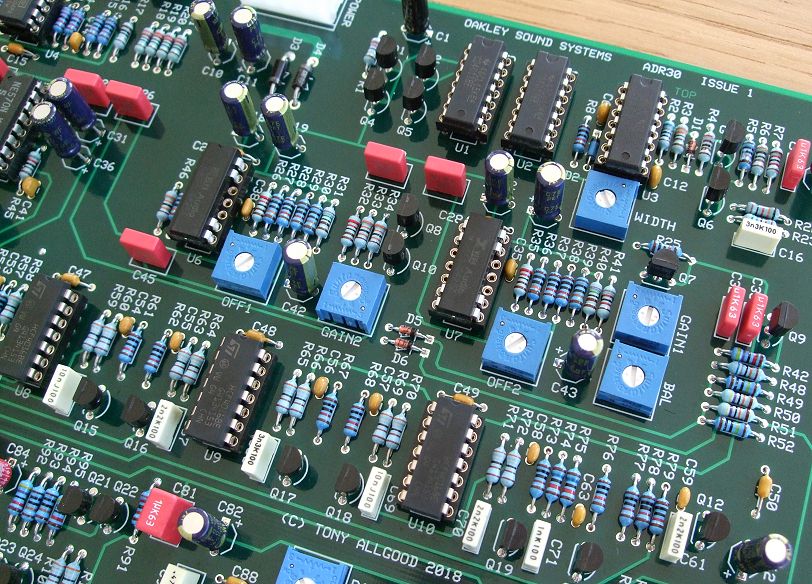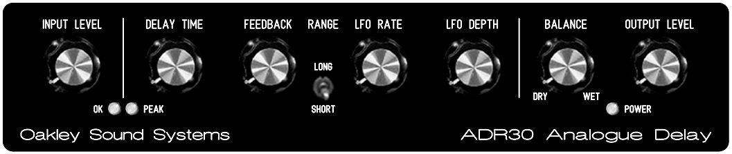 The Oakley Sound Systems ADR30 is an analogue delay module that processes audio signals to create echo and chorus effects. It uses two Xvive MN3005 bucket brigade delay (BBD) integrated circuits to produce a very distinct 'vintage' sound. Classic companding noise reduction circuitry further adds to the sonic characteristics.