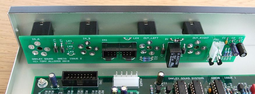 The ADR30 main board can be wired to its sockets directly if desired but an optional I/O board, called the SREIO, is available which makes wiring easier and also has a relay based anti thump circuit.