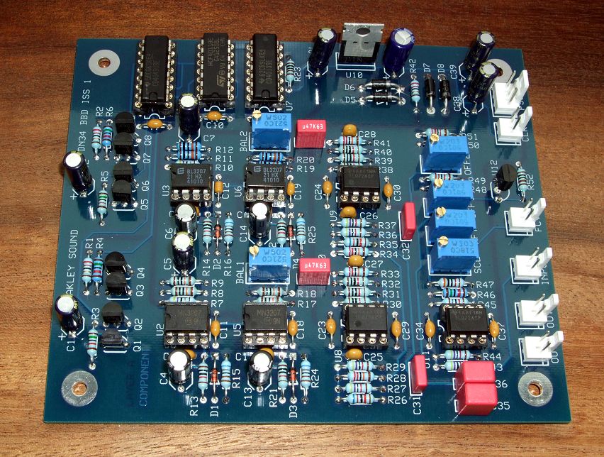 The Oakley Sound DN34 BBD module uses four Panasonic MN3207 BBDs - although you can also use V3207 and BL3207 devices with equal success. High speed, high current, non overlapping dual clock driver circuitry allows usage of the 3207 device up to clock frequencies of 1.3MHz.