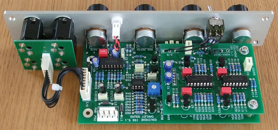 This is an upgrade of our four stage OTA based phaser design, the Oakley Equinoxe. The original Equinoxe is a wonderfully lush and smooth effect and similar in sound to the phaser used by Jean Michel Jarre on the Oxygene and Equinoxe albums. But the Deep Equinoxe goes further. An additional pair of double stages are added, to give a total of six and eight stages respectively, deepening the effect creating a very rich and animated sound.