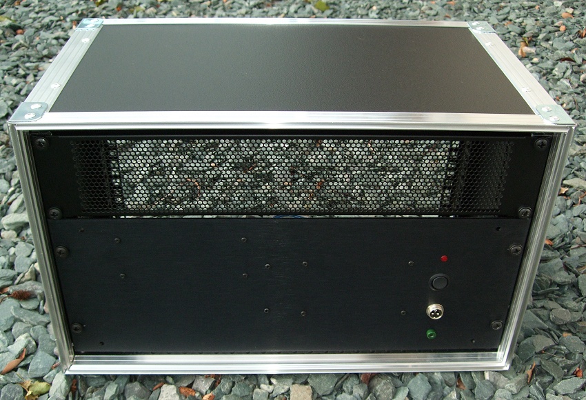 A PSU2 module with internal mains transformer mounted to a 5U high panel at the rear of a 5U high 19" rack case.