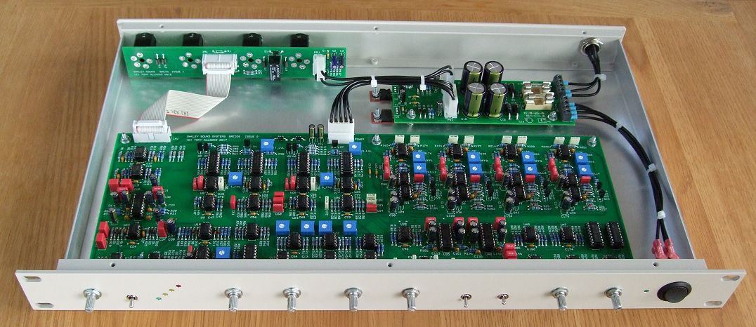 A completed SRE330 fitted into a 1U high 250mm deep rack. The front panel and legending is a metal overlay made by Schaeffer.