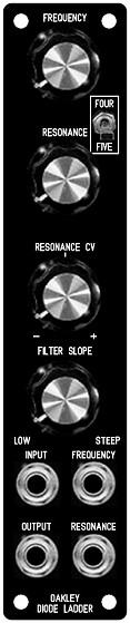 This is the suggested panel design for the 3U version of the Diode Superladder. This is a fully featured filter module that includes inbuilt CV and audio mixer sections.